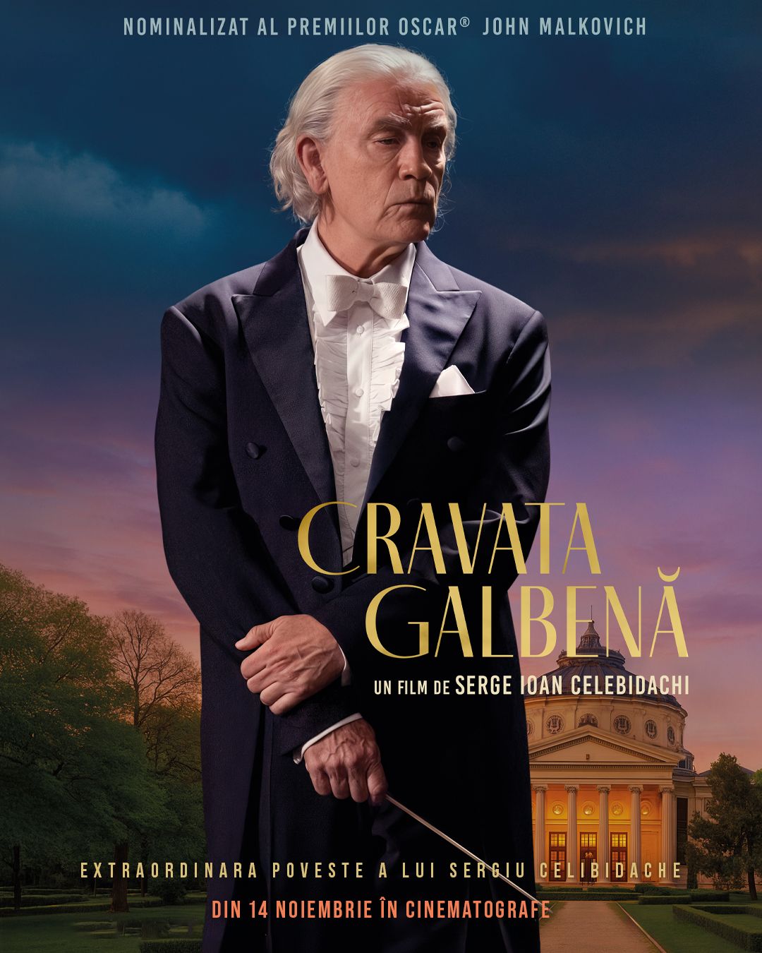 Mult așteptata producție „Cravata galbenă”, realizată cu mari eforturi pe parcursul a șapte ani și al cărei buget a ajuns în final la 20 milioane de euro, explorează viața dirijorului român Sergiu Celibidache, de la începuturile carierei și până la sfârșitul vieții sale.